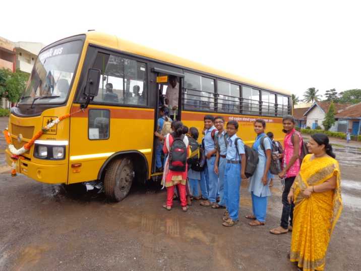 To overcome this problem, our school management decided to start school bus facility for needy students. In the last three years school has bought two school buses and still it is in large demand. Students from 5th to 12th standard regularly comes to school using these buses for a bright future.